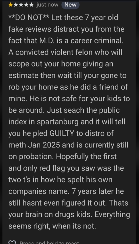 Lets look at his REAL reviews.. the ones he keeps getting removed from google..
