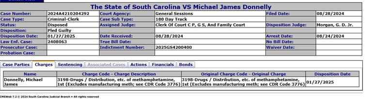 Who pled GUILTY to dealing METH in January 2025. He is currently on probation until January 2026.